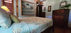 This Balinese style bungalow provides plenty of ceiling ventilation for fresh air, drop ceiling fans throughout, vaulted ceilings, and over-sized screened doors, for an non-obscured view, even from inside! There are convenient patio doors from the two main bedrooms, that allow you to access the deck without walking through the villa.